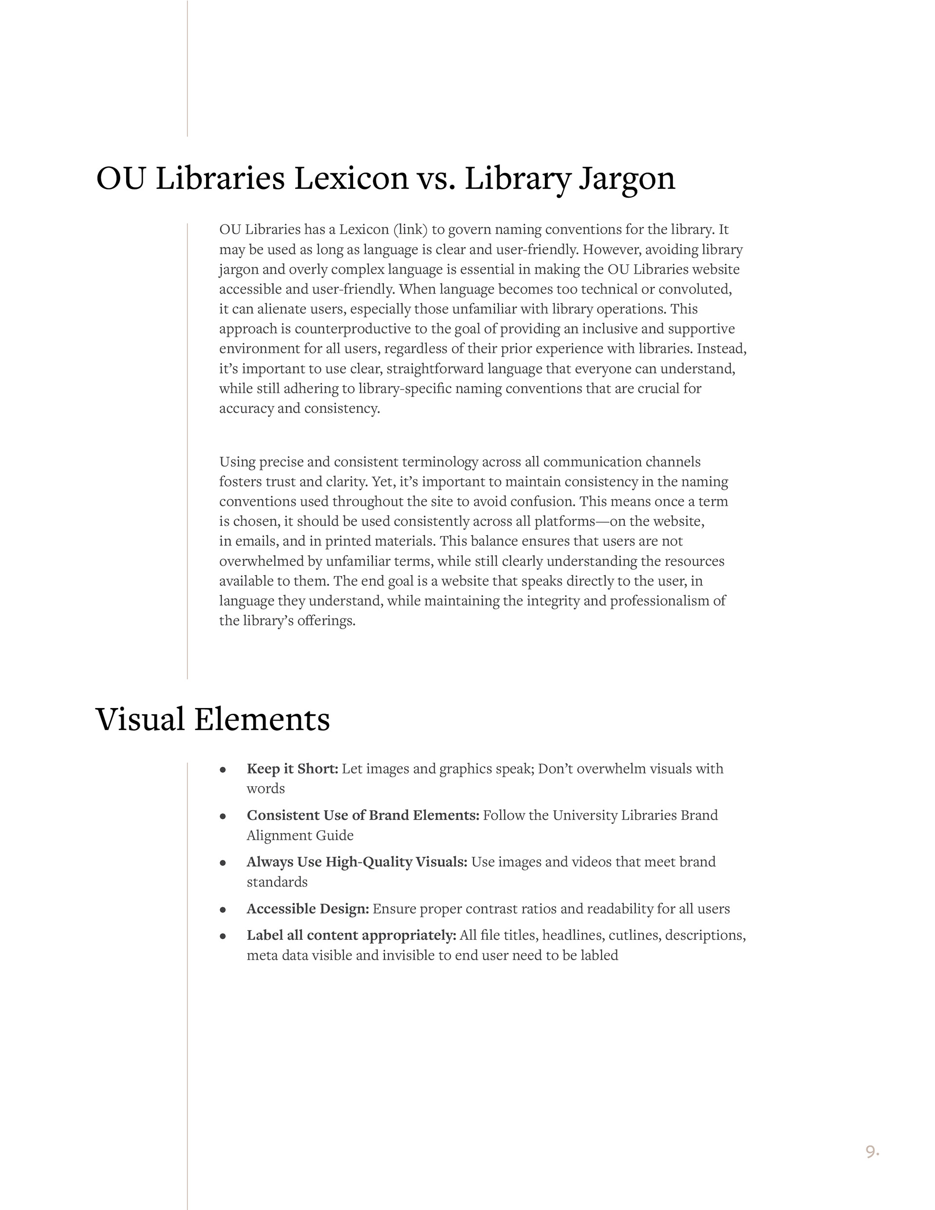 Since OU Libraries staff valued methodical and organized resources, we took an academic approach to this guide’s structure. This ensured they could continue meeting their content goals effectively.